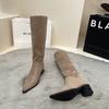 Vintage Women Western Cowgirl Boots Fashion Pointed Toe Slip On Shoes Autumn Winter Ladies Knight Long Booties