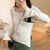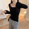 Korean Style Simple Pure Desire Square Round Neck Long-sleeved T-shirt Women's Autumn Waist Slit Top Slim-fit Bell-sleeved Bottoming Shirt