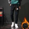 Winter Men Thick Warm Corduroy Sweatpants Men Cargo Pants Color Matching Fleece Liner Elastic Waist Big Pocket Trousers Loose Sports Harem Pants