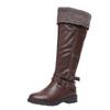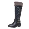 Shoe functions and style details:Round toe, thick heel, low heel, high boots, stitching, belt buckle, sewn shoes