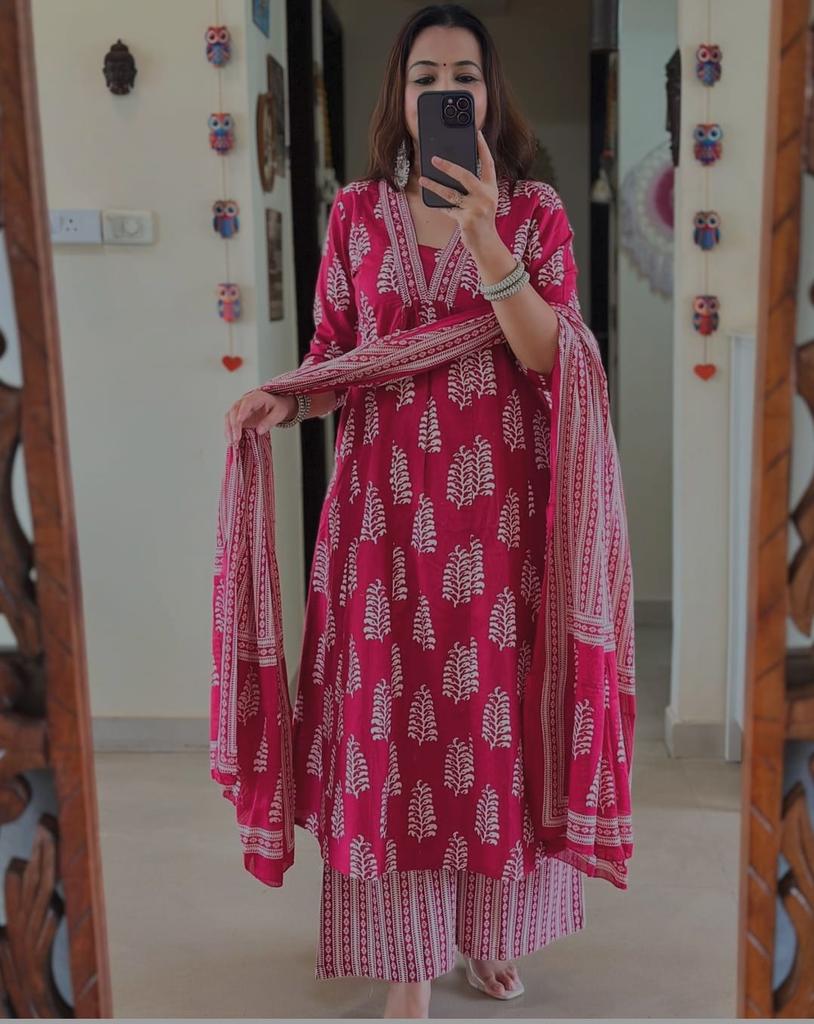 Beautiful Designer Tunic A-line Kurta Pant Dupatta Set Indian Women Kurti Salwar Suit Dress