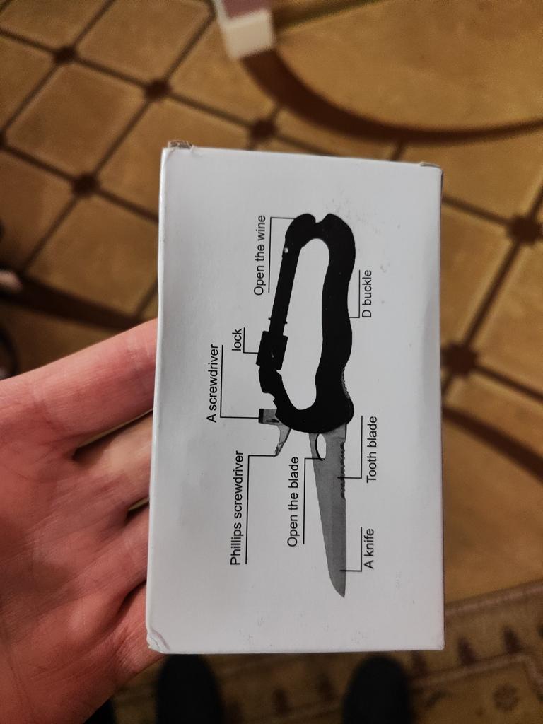 carabiner is normal, not plastic๐ two mini screwdrivers plus and minus, blade is sharpened๐