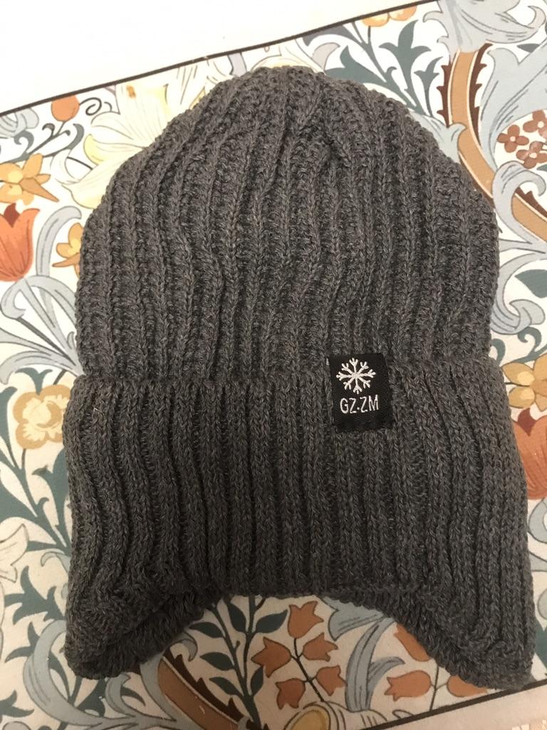The hat is simply knitted from simple yarn. But the warm lining and the style that covers the ears make it interesting to use.