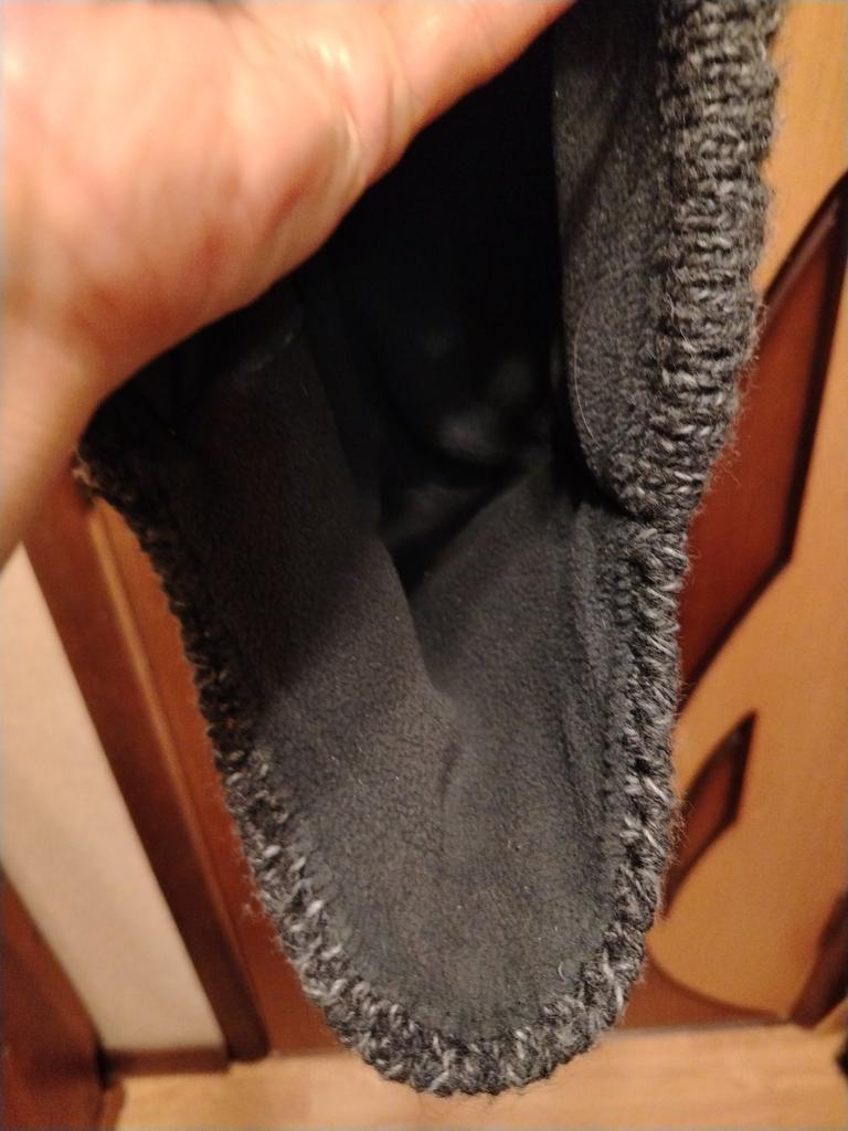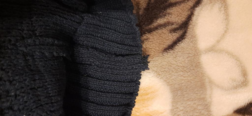 The knit is very sparse. The yarn is stiffly artificial. Unpleasant to the touch. Fleece saves everything.