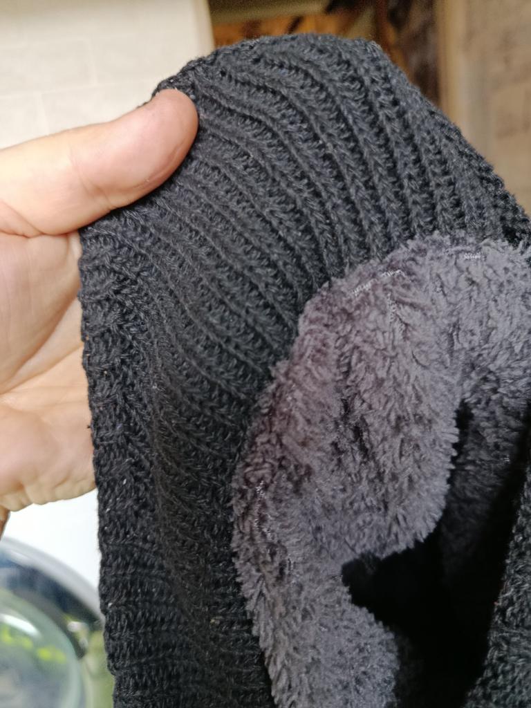 Very strong knitting, voluminous and warm. high quality. warm. I recommend. Protects ears.