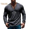 Enhance your style with this top slim fit, perfect for showcasing your muscle lines as a base layer. The solid color design with decorative markings adds a touch of fashion. Featuring a long-sleeved V-neck with adjustable collar buttons, made from a blend of polyester fiber and spandex for a soft, skin-friendly, and elastic feel.
