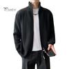 Design: Featuring a timeless striped pattern and a stylish knitted texture, this men's jacket exudes sophistication and charm. The stand-up collar with zipper closure adds a modern touch to this classic piece, ensuring it remain fashionable and versatile for years to come.