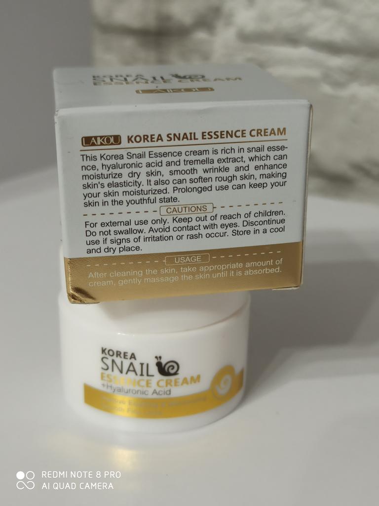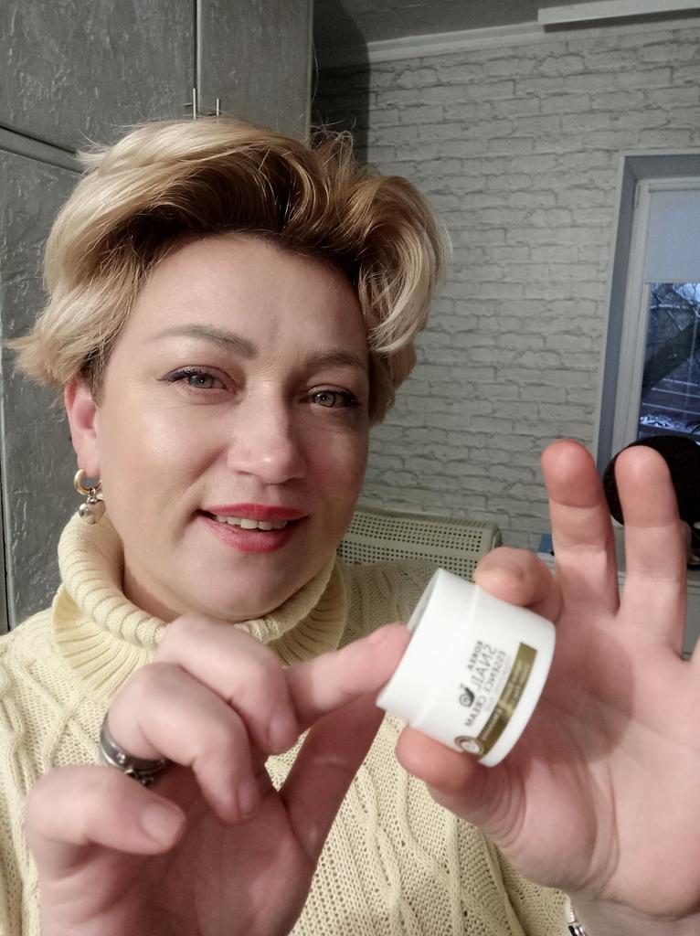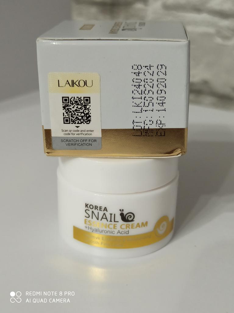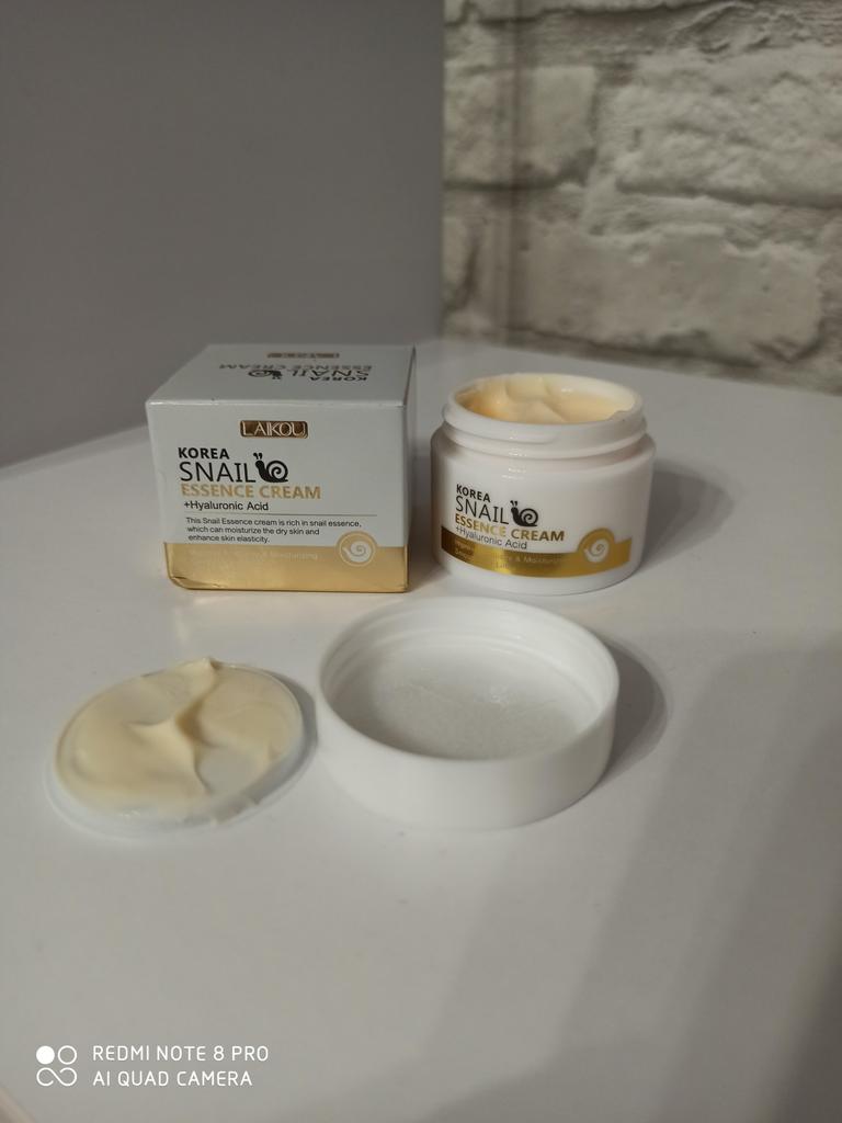 Face cream brand LAIKOU ❤️ Volume: 25 g Cream with hyaluronic acid 💧 and snail mucin 🐌. The cream is quickly absorbed by the skin without leaving a greasy or sticky feeling. After application, the skin becomes velvety, so soft and pleasant to the touch ☺️. The cream moisturizes and nourishes the skin well, smoothes fine wrinkles, and evens out microrelief.. The cream smells nice 🥰. In my opinion, it's a great cream, not for all the money in the world. I'm buying it not for the first time and not for the last time. I like it. I recommend it 🛍️. If the review was useful, put it as a favorite ❤️ I received the goods in 17 days in a combined parcel ✈️. The track was tracked completely. The arrival at the point of issue was announced by sms 📲. The packaging is very careful. The box with the cream is placed in a protective bubble capsule + bubble bag. The box is sealed in mica, all the necessary information is present. Expiration dates are indicated. Everything is great ☺️. Happy shopping and fast deliveries to everyone 🛍️☺️🚀🏵️ And remember that every woman is a star, so shine brighter 🌞 ❤️ PS: Need promo codes? Then be sure to visit my Telegram channel Olena.joom.thebest (t.me/olenajoom), where I regularly publish promo codes to make your purchases even more profitable 😘🛍️.