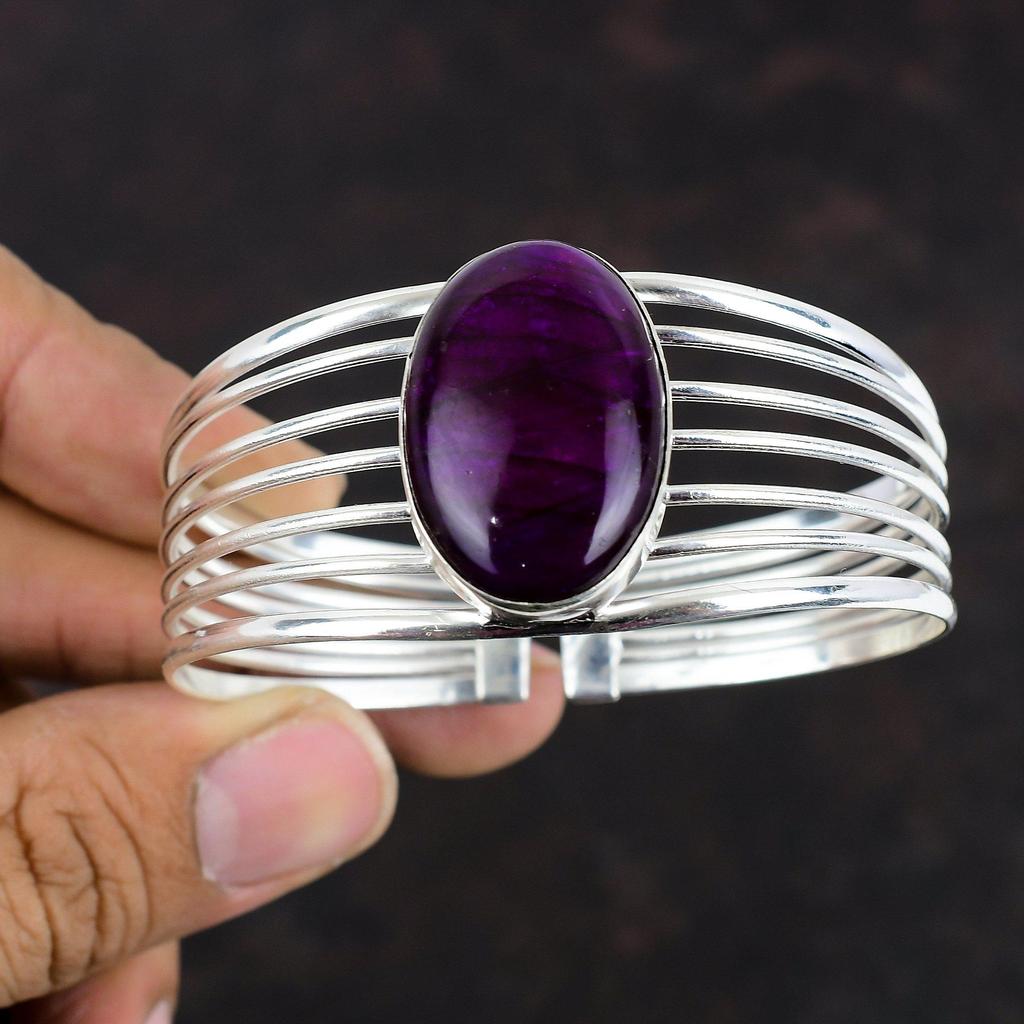 Purple Fire Labradorite Gemstone Bangle Handmade Bracelet 925 Sterling Silver Bangle Adjustable Cuff Bracelet Wedding Gifts Silver Jewelry