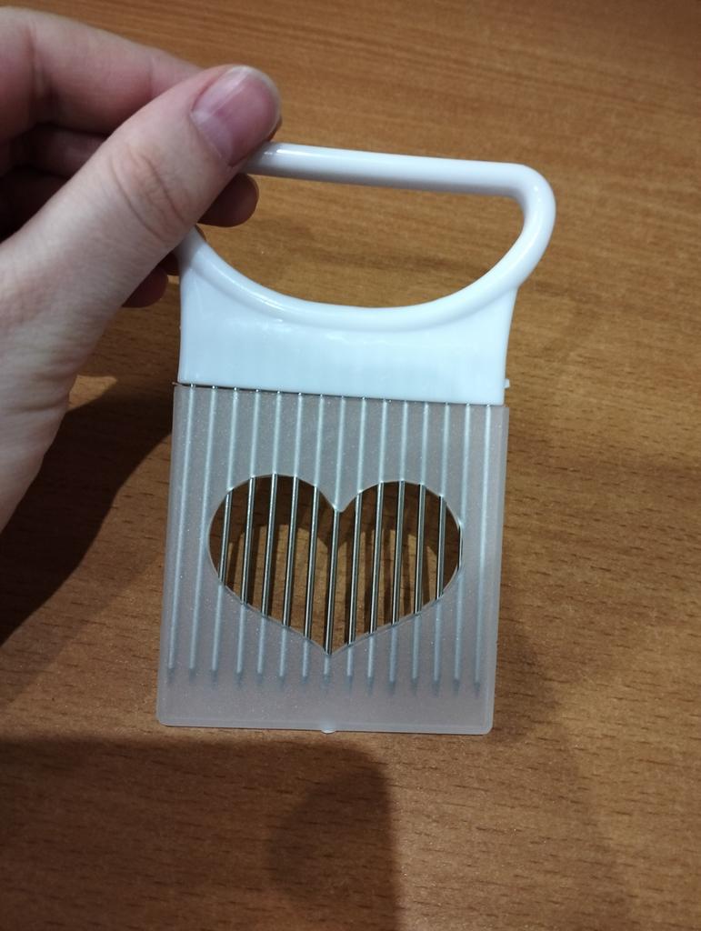 Arrived quickly. Convenient for cutting onions, tomatoes. The slices turn out even.