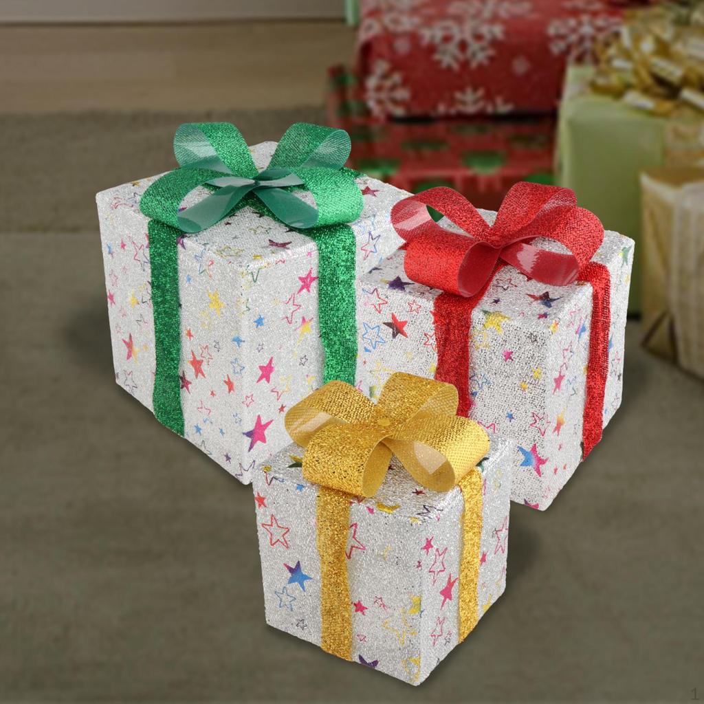 - 【Different Sizes】: Lighted Present Boxes Decoration in 3 sizes, Size S about 15.5 cmx15.5 cmx15.5 cm/6.10 inchx6.10 inchx6.10 inch, Size M 20.5 cmx20.5 cmx20.5 cm/8.07 inchx8.07 inchx8.07 inch, Size L about 25.5 cmx25.5 cmx25.5 cm/10.04 inchx10.04 inchx10.04 inch, great addition to your home decor