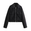 Women Fashion Patch Pockets With Flaps Cropped Jacket Coat Vintage Long Sleeve Front Zipper Female Outerwear Chic