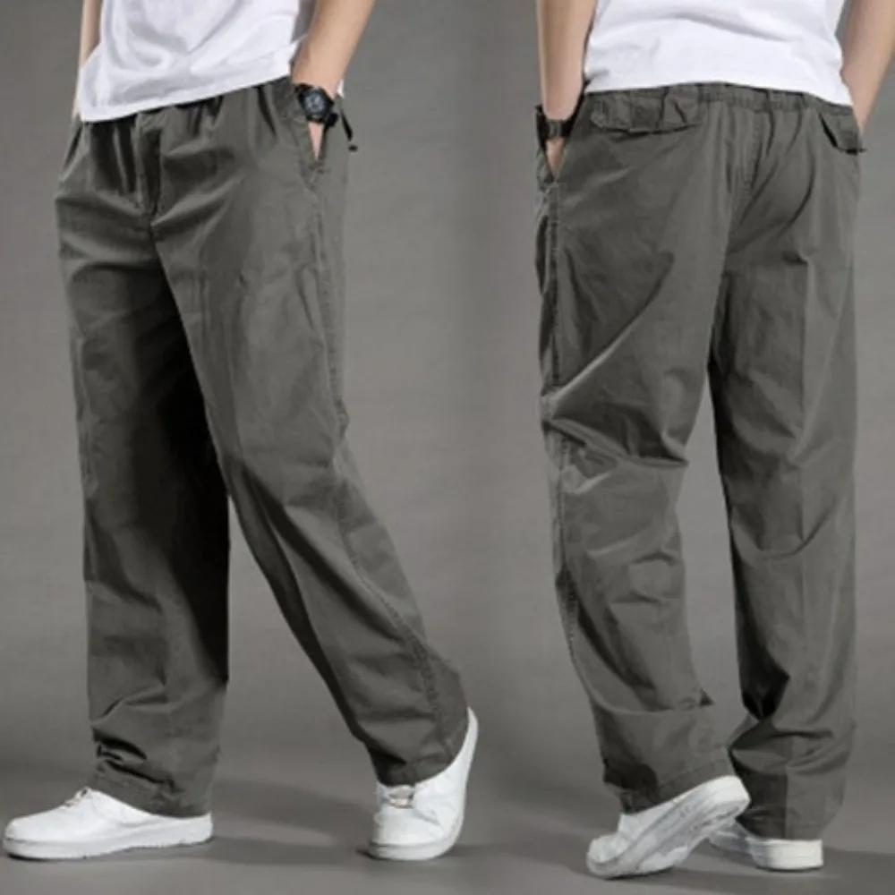 Spring Autumn Thin Men's Casual Pants Work Pants Large Size Loose Men's Long Cargo Pants Elastic Waist Lightweight
