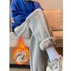 Women Thickened Lambswool Drawstring Elastic Waist Solid Color Pants Loose Ankle-banded Casual Pockets Straight Sweatpants