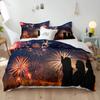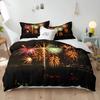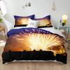 Blue Fireworks Duvet Cover Set 3D Romantic Theme Beautiful City Night New Year Festival Accessories for Kids Teens Bedroom Decor