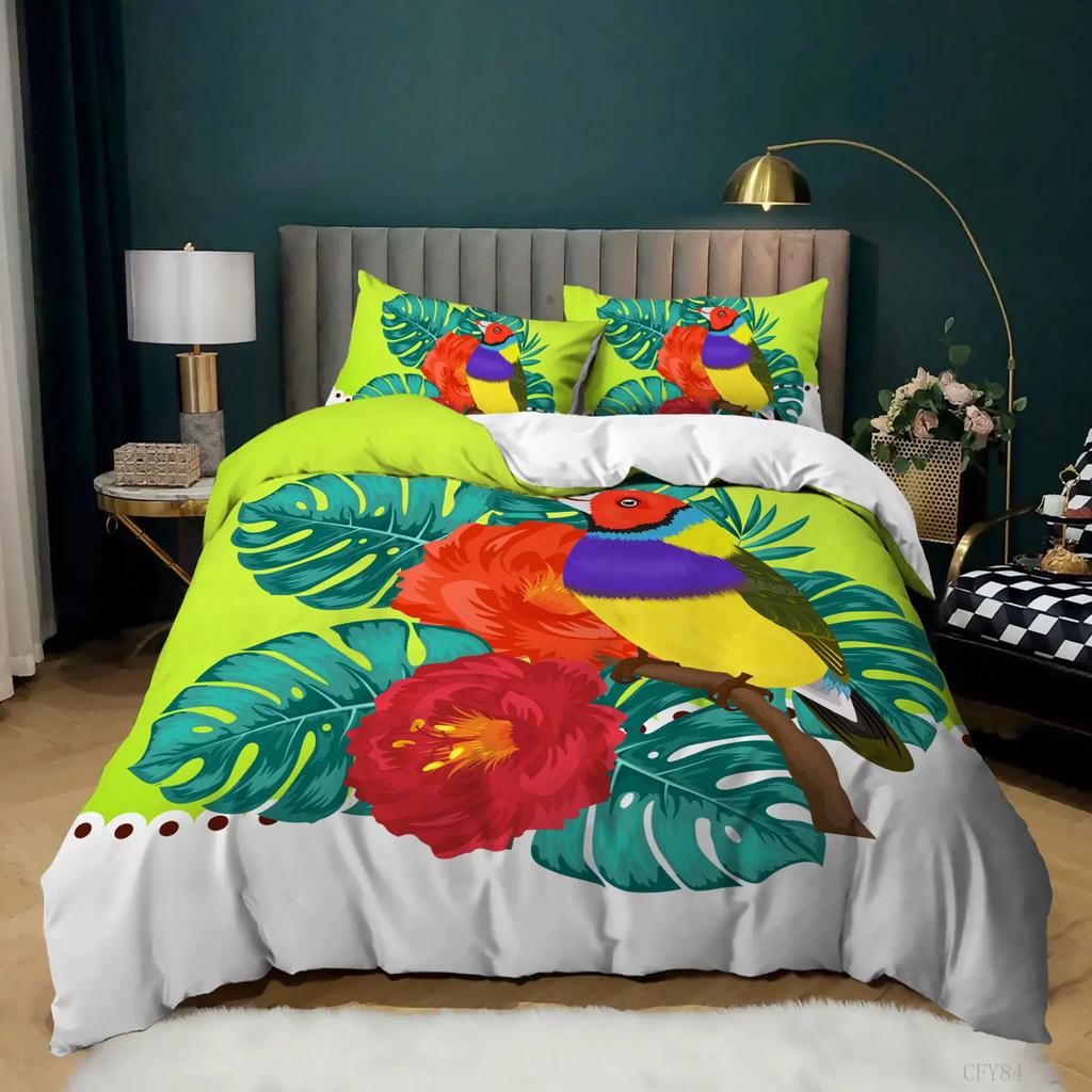 Parrot Duvet Cover King Size Realistic Looking Birds On Branches Macaw Tropical Wildlife Bedding Set Soft Polyester Quilt Cover