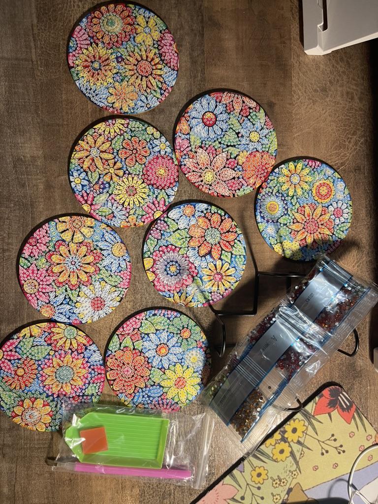8 Pieces/set of Embroidered Ball Flower Diamond Painted Coaster Set with Holder DIY Coaster for Beginners and Adults, Art and Craft Supplies Gift