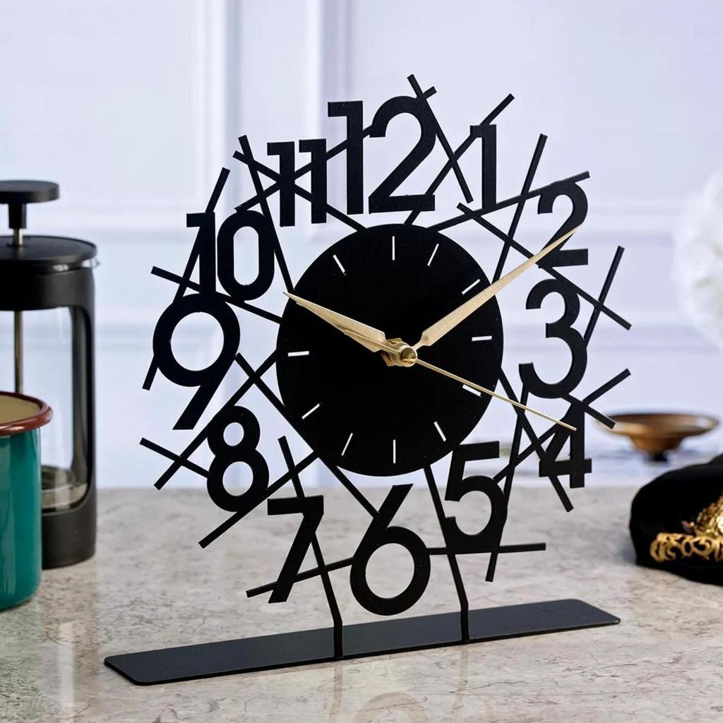 MUYIKA Lineal Metal Table Top Clock 25x23cm, Home Decoration, Table and Desk Clock, Stylish Clock for Home