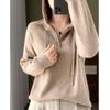 Hooded Solid Color Semi-new Drawstring Sweater Zipper Casual Loose Women's Pullover Andy Velvet Long-sleeved Bottoming Top