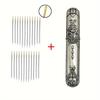 1 Piece Retro Embossed Alloy Needle Box with 24 Pieces Side Threaded Blind Needle Set, Sewing Needle Storage Container, Elegant Craftsmanship
