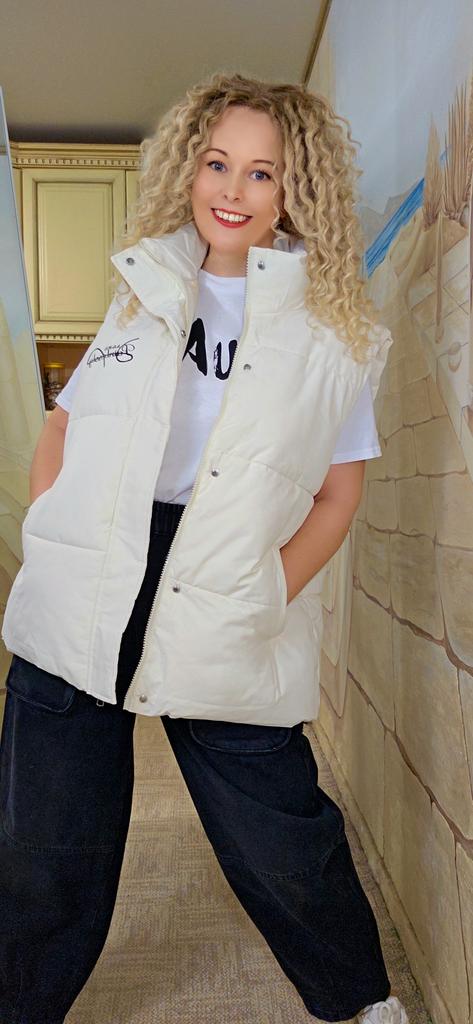 Down Vest Jacket Women Autumn Winter Patchwork Letter Print Stand Collar White Duck Down Waistcoat Lady Outerwear Tank Tops