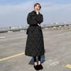 2024Winter Long Overcoat Women Pattern Casual Sashes Parkas Female Pockets Puffer Jacket Cotton-padded Outwear