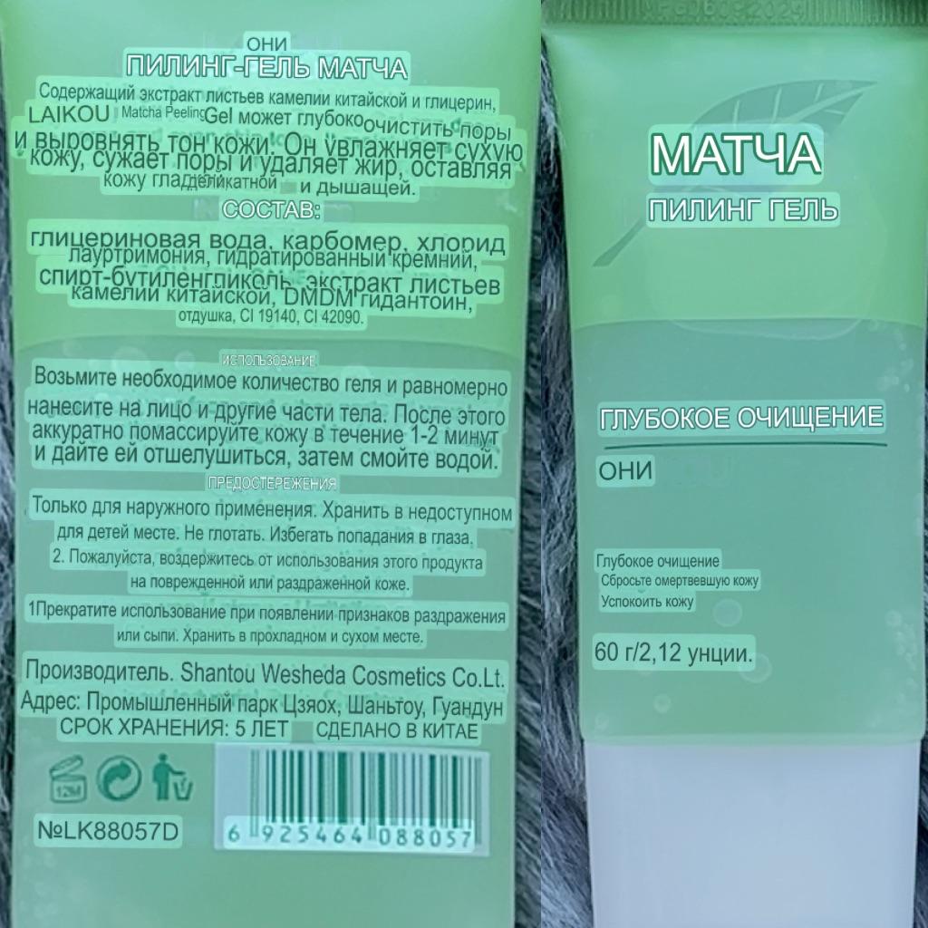 Perfect way to exfoliate your skin with Lakou.This matcha peeling will help you to do it.D9nt k ow why it's called matcha maybe because of colour but main ingredient is tea extract together with glycerin.Very pleasant smell,gel like substance,after you apply on the skin and massage it into the skin it turns into "crumbs".Clearing all the dead skin cells,oil residue and blackheads,skin feels smooth afterwards.Deliverytook 3 weeks to Ireland.Happy Shopping!