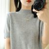 Spring and Summer Women's New Loose Half Turtleneck Mid-sleeve Short Pullover Solid Color Bottoming Sweater T-shirt