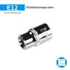 Metric 6-Point Flower-Shaped E-Type Socket Set: 1/2 Large, 3/8 Medium, 1/4 Small, Star Type.