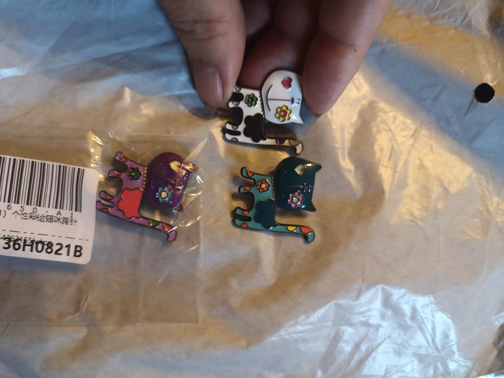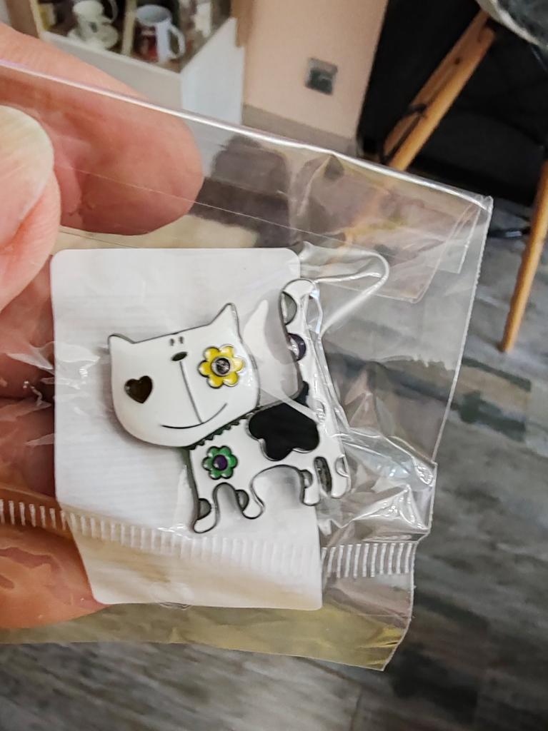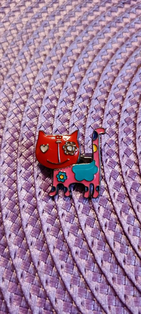 A cat as a gift. The product is of high quality, it is attached securely, with a pin. Bright. Not large.