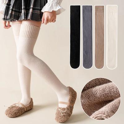 Kids Stockings Winter Warm Knee Velvet Children Long Socks Thick Wool Leg Warmer Thermal Foot Cover Solid Color Baby Girl Knitted Stockings