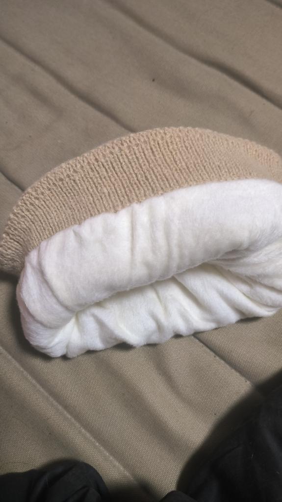 The hat has a lining sewn in. Which makes it not quite comfortable. I unpicked the lining so it's a little better.