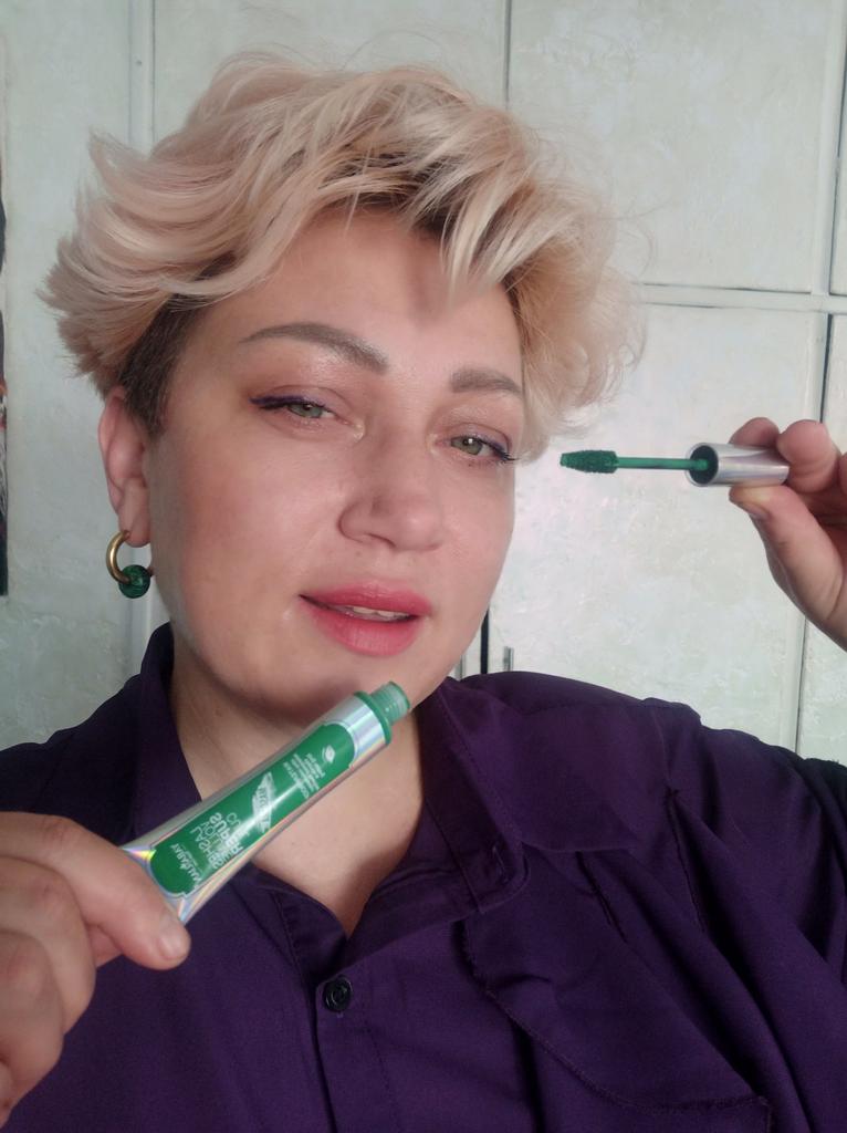 It paints well, there is no volume or lengthening, it just paints the eyelashes green) but I didn't expect anything more from colored mascara
