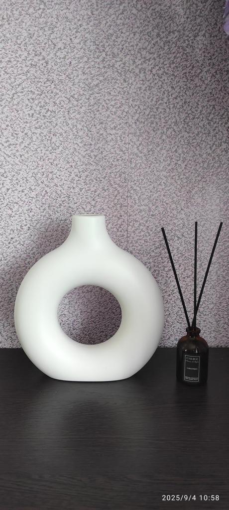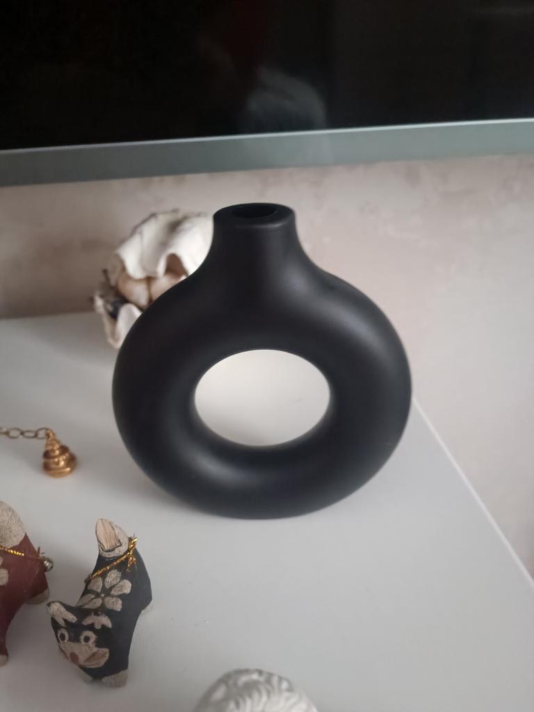 Handmade with care, this unique donut-shaped vase is a stunning piece of art that doubles as a functional decor item. Ideal for gifting to loved ones who appreciate modern and distinctive vases, it adds a touch of elegance to any space. The hollow center of the vase sets it apart from traditional designs, making it a standout addition to your home. With its minimalist and timeless design, this vase seamlessly complements various interior styles such as boho, Scandinavian, or contemporary. The natural matte color enhances its beauty, making it a versatile decor piece that can be displayed with or without flowers. Perfect for adorning bookshelves, desks, dining tables, or windowsills, this vase effortlessly elevates your home decor.