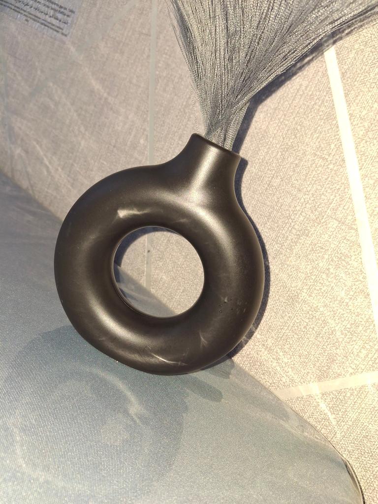 Unique Donut Design: Stand out with this vase's distinctive donut shape, a departure from traditional vases. The hollow center transforms it into both a functional vase and a captivating art piece, adding a touch of creativity to any space.