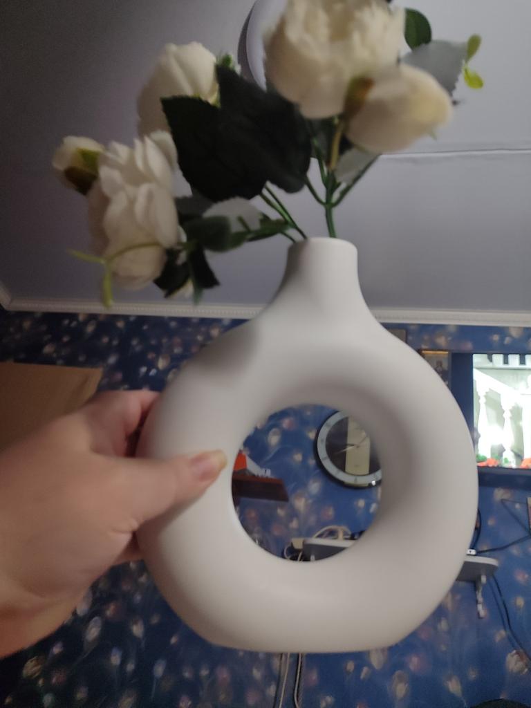 Elegant Minimalism: Embrace timeless elegance with this vase's simple yet sophisticated design. Its minimalist aesthetic, inspired by the donut shape and natural matte color, effortlessly complements various decor styles like boho, Scandinavian, or contemporary. Whether adorned with flowers or displayed alone, this vase exudes charm and style.