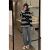 Retro Striped Sweatshirt Women's New Autumn Thin Ins Loose Korean Style Long-sleeved Round Neck Pullover Top Trendy and Fashionable