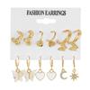 Multi-layer Geometric Circle Inlaid Rhinestone Butterfly Stud Earrings Set 6 Pairs of Creative Butterfly Pendant Earrings