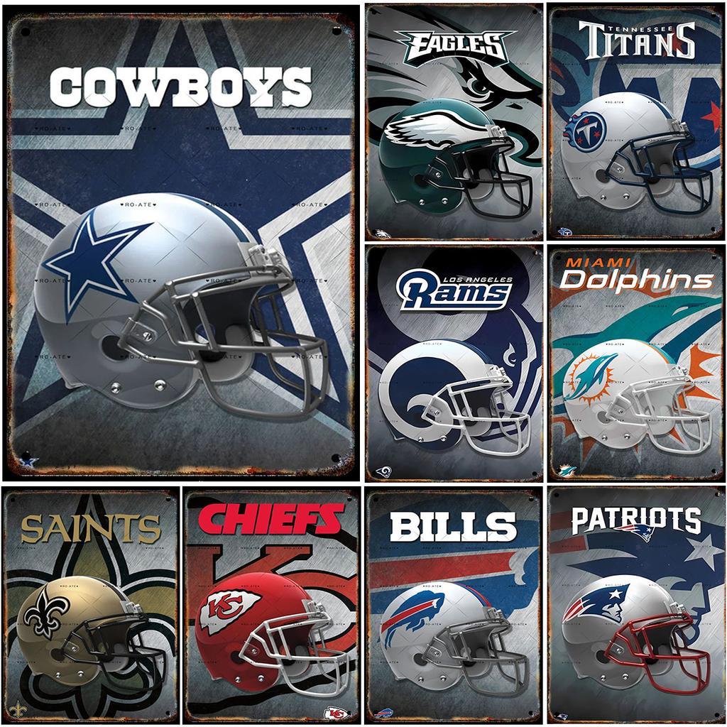 Football Helmets Metal Tin Signs Wall Decoration Plaque Vintage Art Poster Iron Painting for Man Cave Home Cafe Garden Club Bar