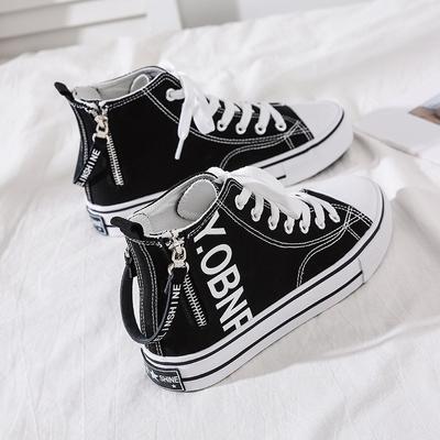 Design Sense High Top Canvas Shoes 2024 Autumn New Versatile Board Shoes Simple Side Zipper Women's Shoes Woman Designer Shoes