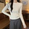 Autumn and Winter Korean Style Unique Slim Fit Temperament Round Neck Long Sleeved Knitted Base Sweater Women's Sweater with Warm Top Underneath