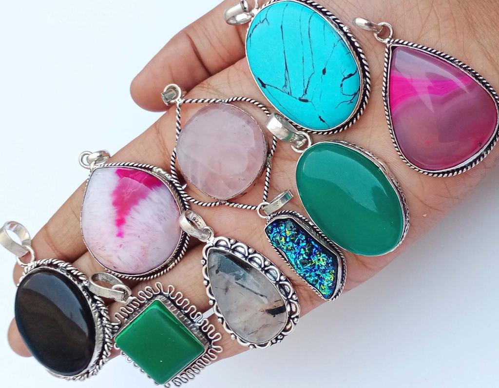 Onyx & Mix Gemstone 925 Sterling Silver Plated Handmade 5 PCs Fancy Pendants Jewelry SEN-68