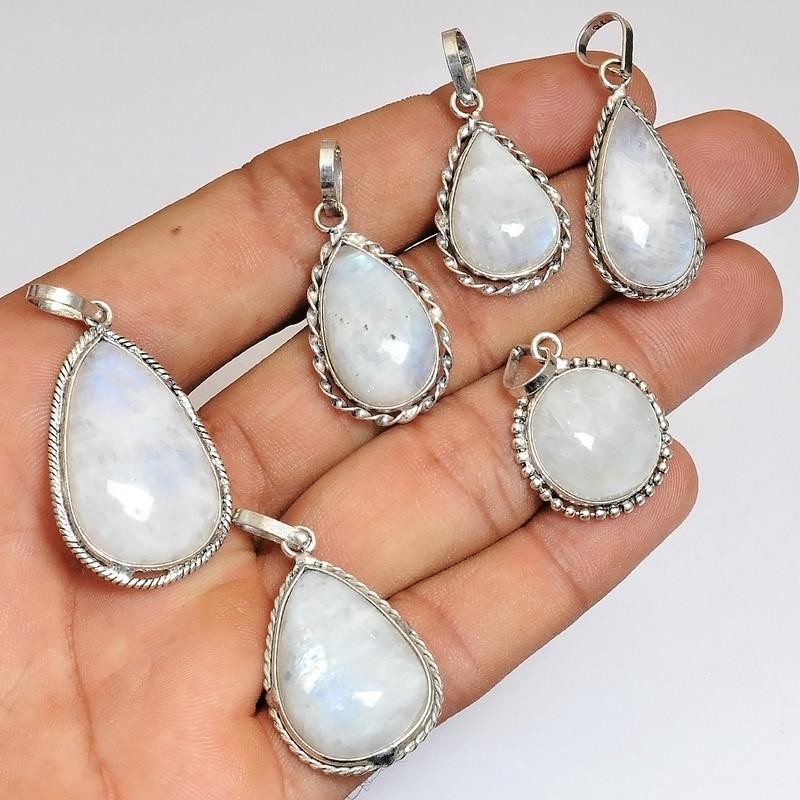 Moonstone Gemstone 925 Sterling Silver Plated Handmade 5 PCs Fancy Pendants Jewelry SEN-192