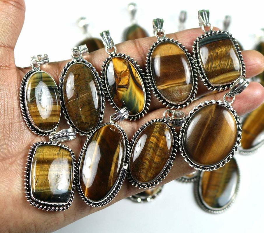Tiger Eye Gemstone 925 Sterling Silver Plated Handmade 5 PCs Fancy Pendants Jewelry SEN-334