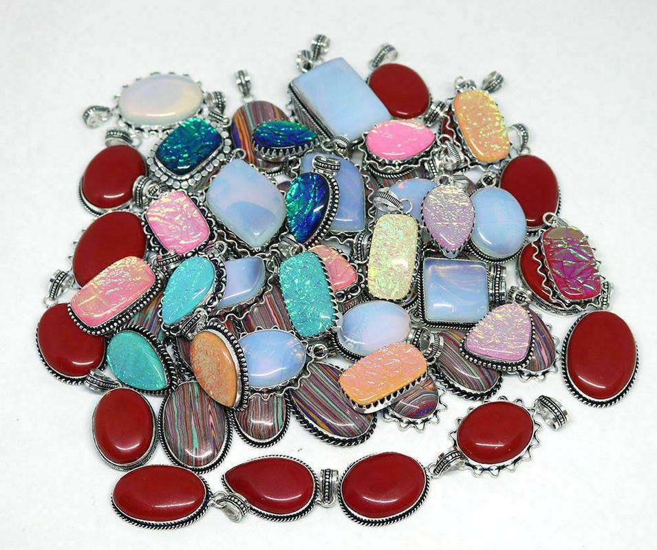 Coral & Mix Gemstone 925 Sterling Silver Plated Handmade 5 PCs Fancy Pendants Jewelry SEN-354