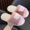 Girl's Cartoon Slippers Furry Open Toe Solid Color Home Outdoor Children Sliders Winter Fashion Anti-slip All-match Kids Shoes