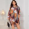 Polo Neck Long Dress Leopard Printed Shirt Neck Long Sleeve Plus Size Women's Fashion Dress