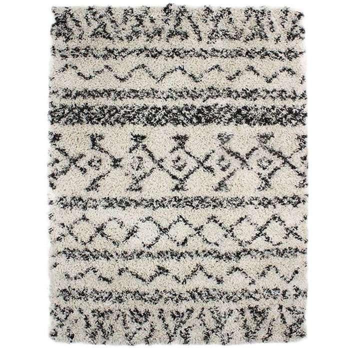 Ecru Ethnic Pattern Long Pile Rug 133x190