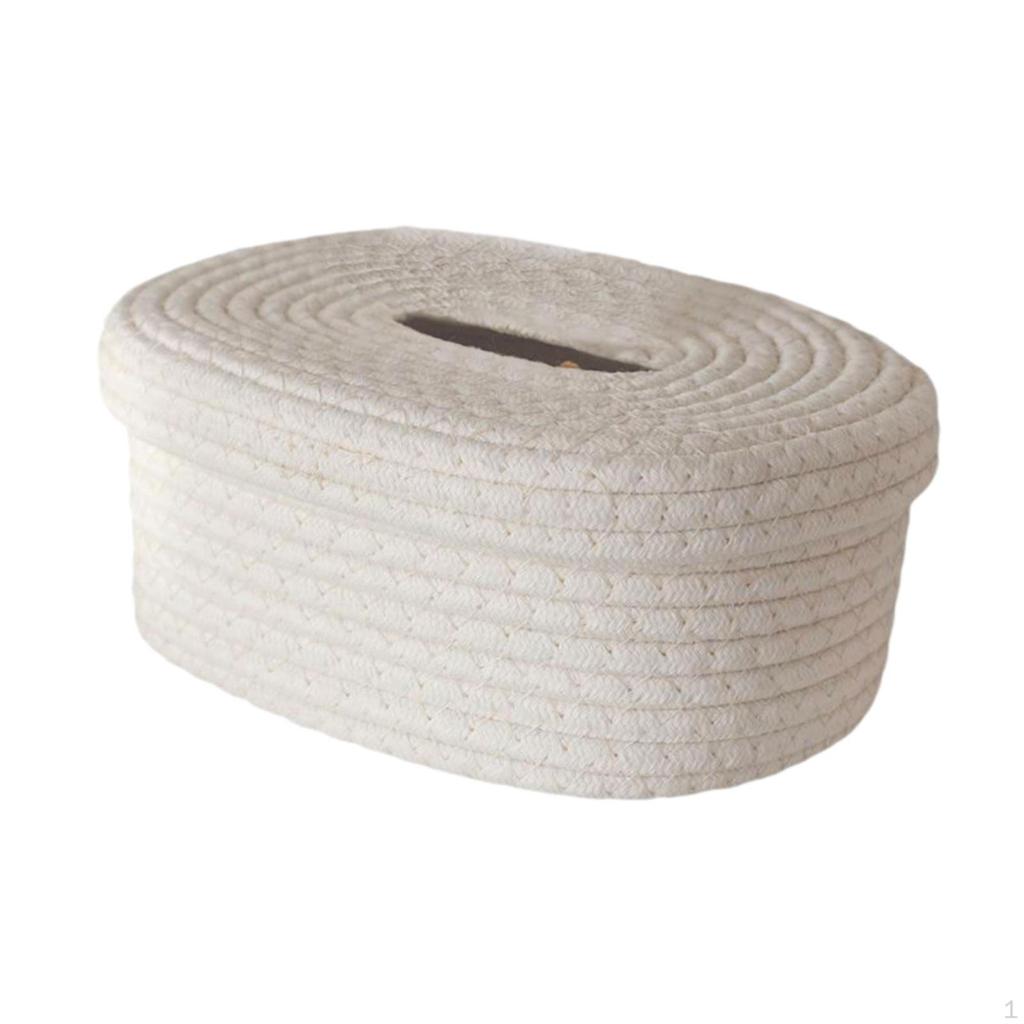 Cotton Rope Tissue Box, Paper Holder, Decorative Cover, Reusable Dispenser for Dining