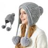 European and American Ladies Winter Thickened Ear Protection Three-pile Rabbit Fur Knitted Hat Outdoor Cycling Face Protection Warm Hat